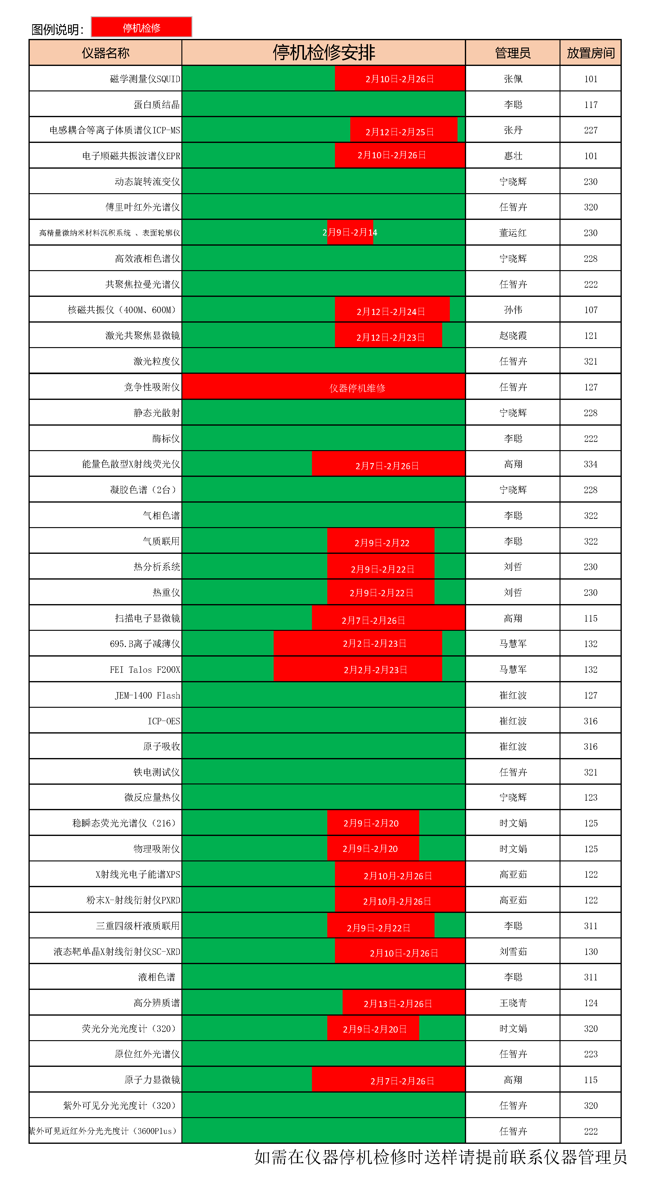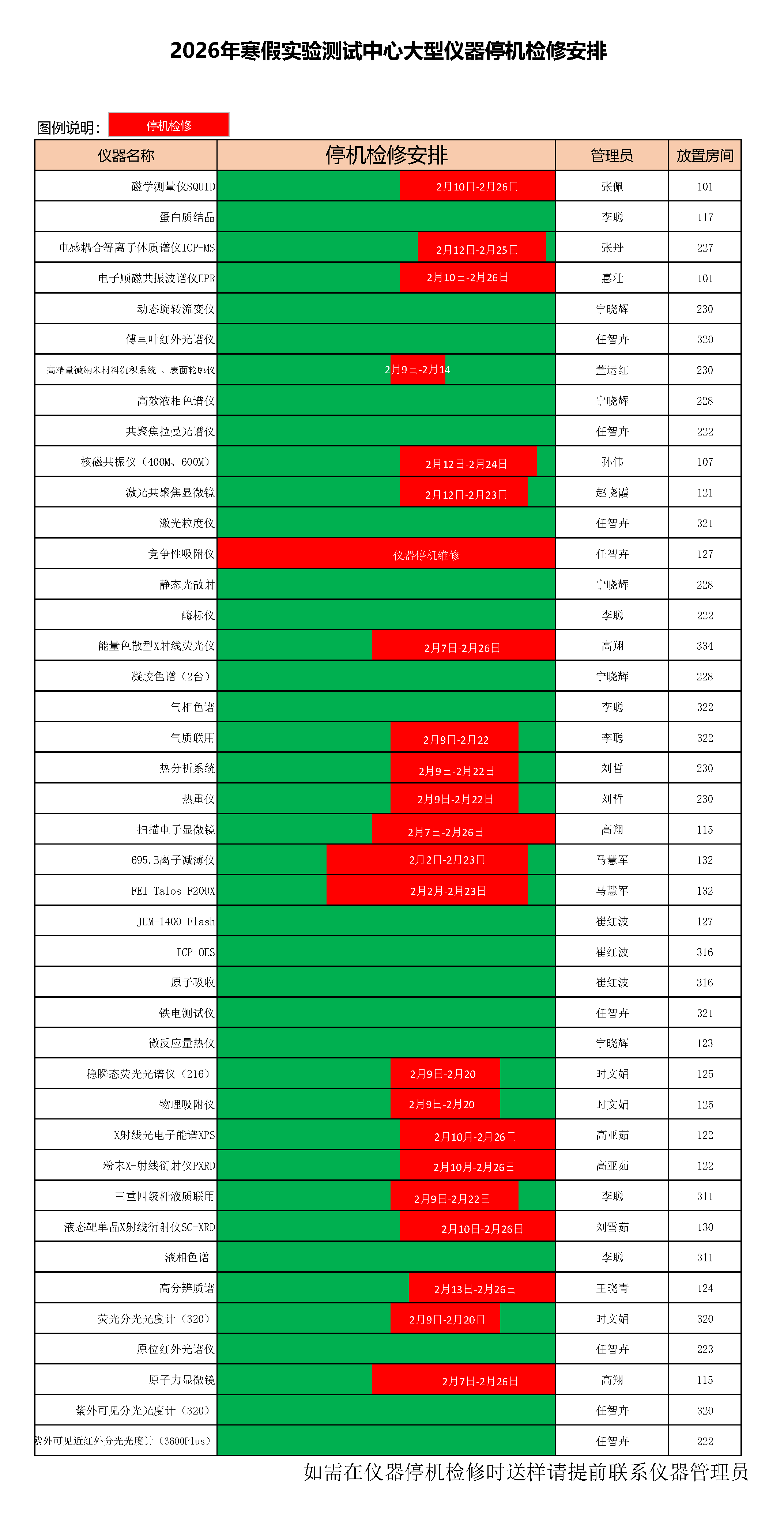 2026年寒假实验测试中心大型仪器停机检修安排